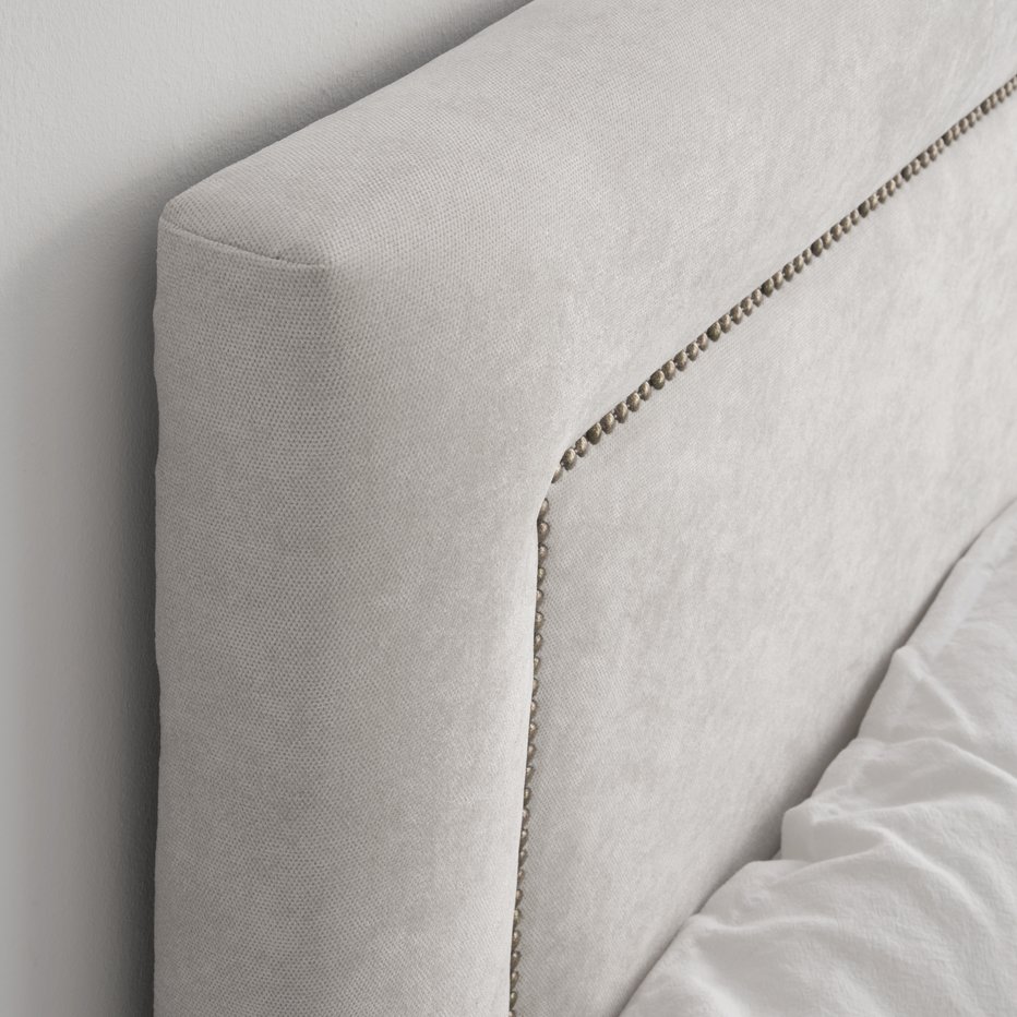 En foto principal: Volga cabecero tapizado en tela Nola 18 para cama de 150 cm